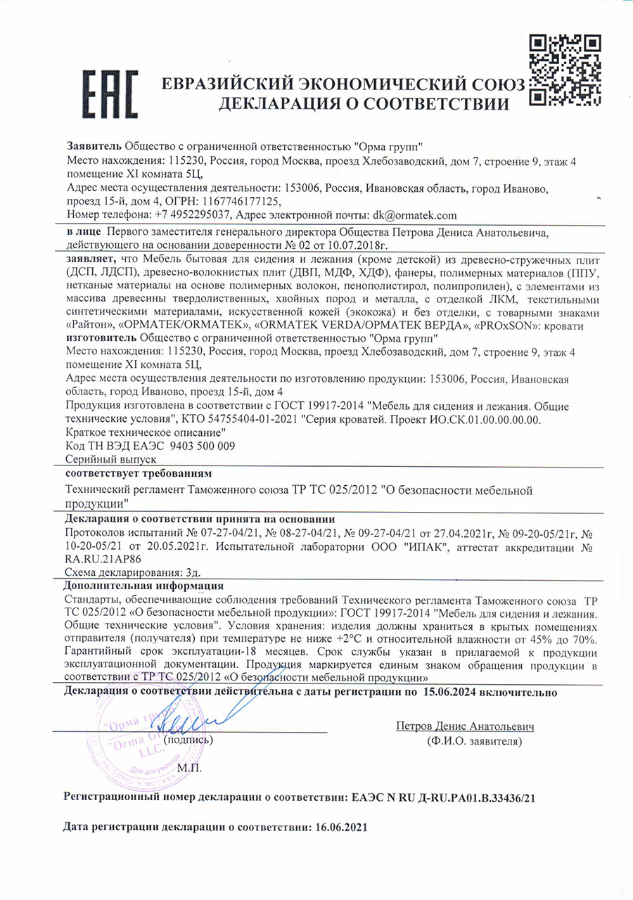 Гарантия распространяется на матрасы, кровати, основания и аксессуары представленные на нашем сайте.